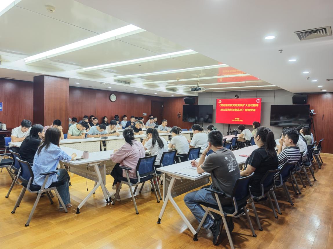8月28日,深海所召開專題黨課,黨委書記、副所長彭曉彤作題為《學習貫徹院黨組夏季擴大會議精神 搶占深海科技制高點》的黨課報告。科學部第一和第二黨支部、工程部第一和第二黨支部、載人潛器黨支部、國家重點實驗室黨支部黨員50余名黨員參加會議。