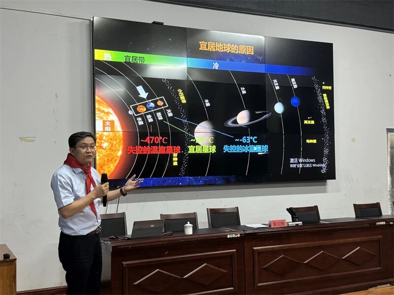 當天,徐義剛院士還為大屯小學的學生們帶來了一堂生動的科普講座,他以“地月對話:從‘阿波羅’到‘嫦娥探月’”為主題,向學生們科普了關于月球的相關知識,介紹了我國對月球持之以恒的探索之路,并與現場學生分享自己的感想。同學們認真聆聽,在講座中萌發對科學的興趣。